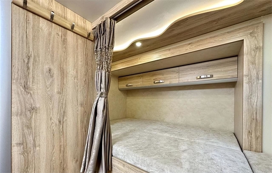 厨房区位于车厢中部,配有带盖式洗手池、电磁炉、抽油烟机及进口大宇洗衣机等;厨台侧面还设计有隐藏式延展操作台及鞋柜;位于乘客门上方集成控制面板采用触控屏设计,可控制车内照明及各个电器开关等;电器方面配备埃贝赫柴油暖风机及特鲁马电热水器等;选装特鲁马燃油暖风热水一体机等。