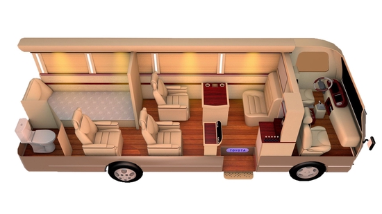 丰田考斯特豪华版外观颜色为米黄金色,高贵的米黄色金属漆配备改装的彩色中线,外观上就给人以档次十足之感。此外,北京东方众威原创丰田考斯特还贴心的配备了电动踏板,方便乘客的上下车需要。