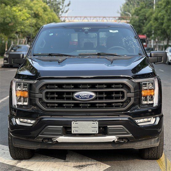 全新福特F150 XLT版在外观的设计上,和猛禽有异曲同工之处,巨大的进气格栅黑色的网状装饰,并配以雕琢式的福特品标识,FORD字样使用黑色调和车身混为一体。霸气又不失内敛。