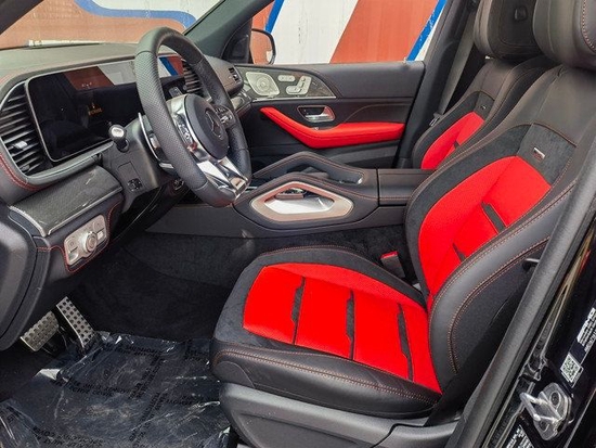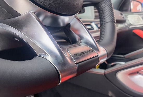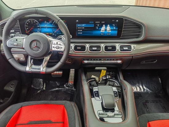 2023款奔驰GLE53内饰方面,依旧延续了运动型AMG的主题,乍一看,你可能会被众多的红色缝线所震撼,它隶属于新车的一个可选配置包,不仅是缝线,包括方向盘上也增加了红色的中心标记(就像你在一些赛车中看到的那样)和红色安全带等等。另外,它的内饰还采用了大量的碳纤维材料,让它进一步散发出浓郁的运动与舒适感。