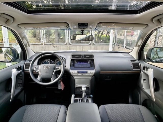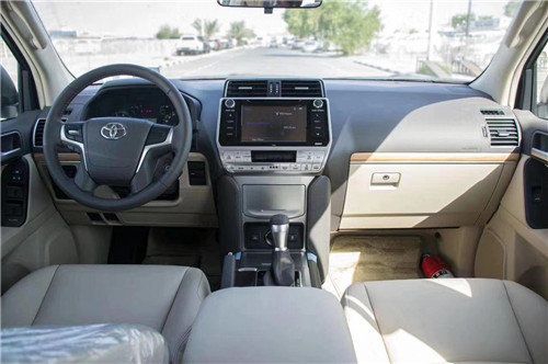 22款中东版丰田霸道2700整体布局很规整,深色中控台搭配银色面板让这款车看起来很简洁丰田霸道多功能能方向盘采用了类似路虎的四幅式设计,当然新增加的多功能按键也十分实用。