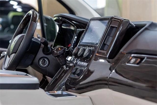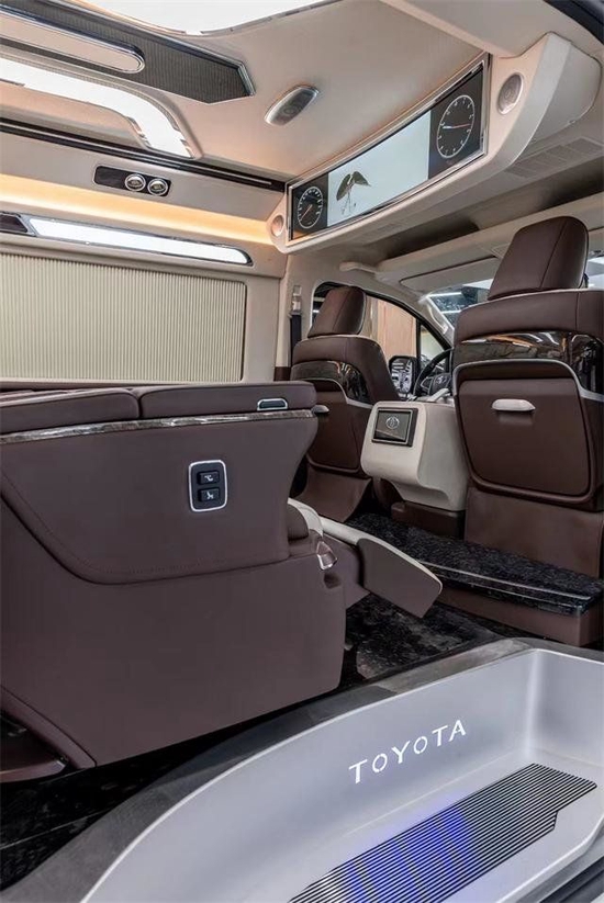 丰田海狮主副驾驶四项电动调节还增加了座椅加热功能,驾驶舱座椅中间的扶手也升级成了车载冰箱,在中控台和方向盘等多处加装了桃木纹配件。整车真皮软包,包括座椅,门板,以及最不常见的车顶都做了软包。而且中控的位置,全面升级了九寸导航,搭配了360的全车影像。