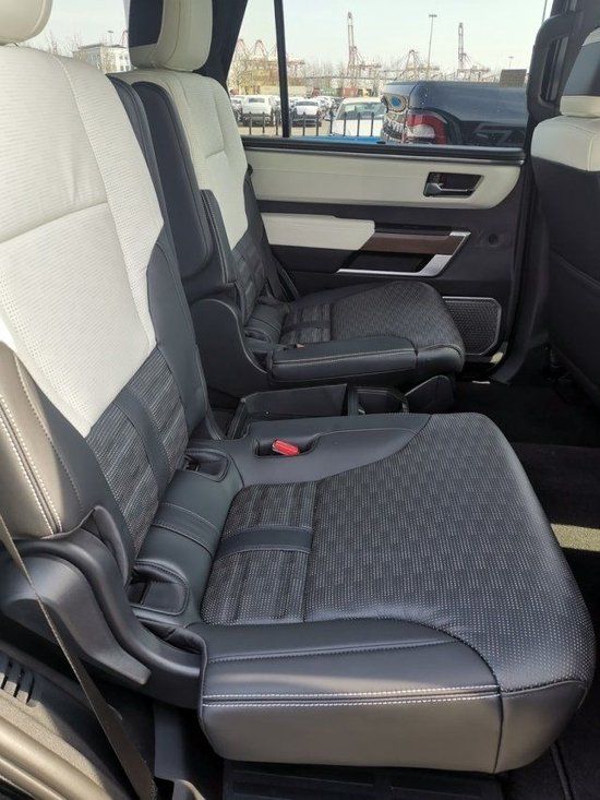 23款丰田红杉内饰的实用性与空间利用率在这代红杉身上均得到提升,坐进车内,第一感受就是大,前排的两个大尺寸的真皮座椅,自带打孔透气皮料,四幅式多功能方向盘,握在手里的质感不错,转向也没有想象那么重,T型的中控平台,尺寸方面也比一般车型大不少,14英寸的中控触摸屏,集成了几乎所有的影音娱乐以及车身控制功能。座椅通风加热按摩,第二排独立座椅设计,第三排的空间上提升得尤为明显,三排座可以用大沙发来形容。