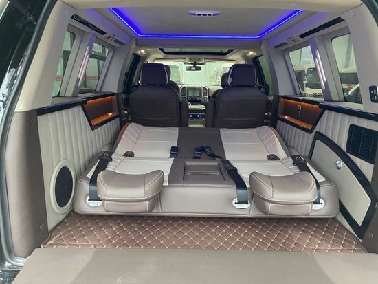 新款福特勇猛者也得到了很大的提升,勇猛者的内饰风格并不像它的外观那样威武霸气,浅色的内饰搭配木纹装饰板看上去更加奢华,方向盘采用四幅设计,上海元素汽车内饰设计真皮包裹的方向盘带有多种功能,粗细均匀驾驶感超好,二三排座椅电动调节,带有座椅加热功能,为了摆脱后排乘坐人员的枯燥感,我们在后面加装了氛围灯,使得更加提高了档次,把后排座椅来放平就是一个简易床,长途旅行时也不能忘了休息喜欢此车的朋友可添加本人微信详谈,可视频看车。正规渠道进口,签发全国认证正规车辆手续,一手车源。朋友圈每天更新最新平行进口车新车上市资讯,配置报价图片、市场行情等。新车批发及零售,豪华改装、私人定制、全国分期办理、上牌、购车享受一条龙服务购车热线:18812637416刘经理 (同号微信)
