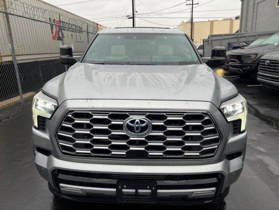 全新一代23款丰田红杉23款丰田红杉前脸方面,新车多边形进气格栅内采用了六边形的网格设计,外侧有着镀铬饰条进行包围。机盖的线条充满肌肉感。格栅两端部分的倒L型前LED大灯组充满张力。前包围很具层次感,有着不少的缕空设计。