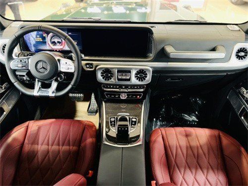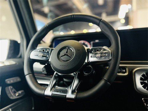 23款奔驰G63内饰方面,奔驰的设计绝对可以用惊艳来形容,无论是经典车型还是超豪华车型甚至是入门级的豪华车上,奔驰的内饰都会让你眼前一亮,当然了这也是奔驰的一个特色。所以这部全新的G63在内饰的表现上也是情理之中的,但是细节上还是有些小小的意外。这种感觉是打开车门的瞬间就能够感受到的。首先仪表和中控屏依旧是采用了同一款液晶屏显示,第一感觉就是科技感爆表。而其他方面例如方向盘,空调出风口,挡杆等等的设计充满设计感。
