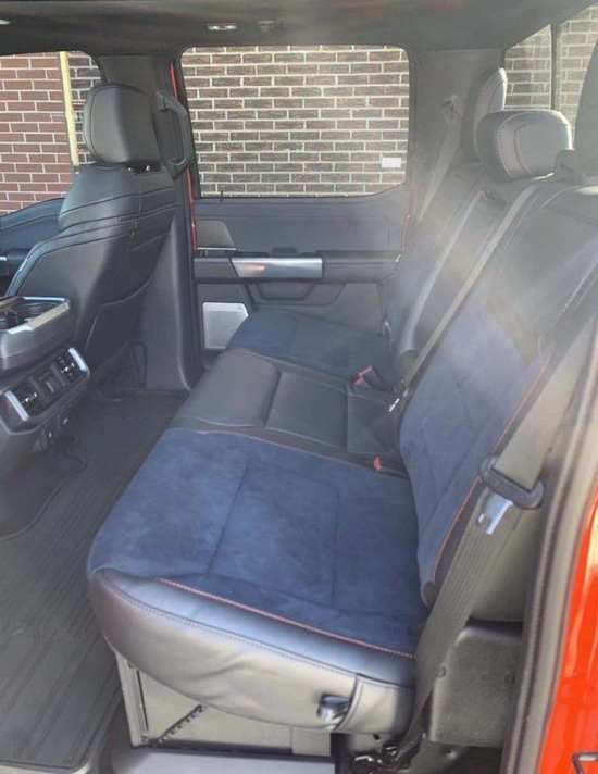 2023款福特猛禽F150除此之外在车身侧面我们并没有发现新车有什么过大的改变,但是我们都知道第三代的F150已经从原来的弹簧板减震换成了现在的螺旋弹簧减震,对于驾驶舒适性是有一定提高的,但是在车身后侧对于货物的承载能力我们目前还尚未得知。