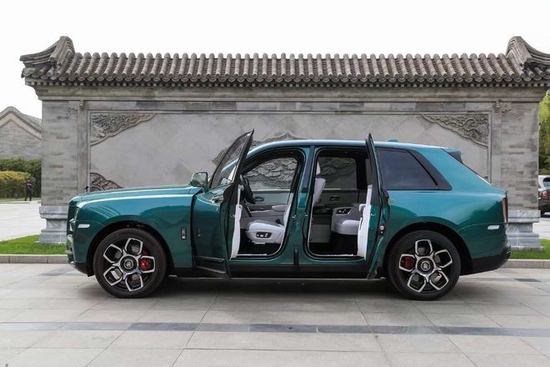 劳斯莱斯库里南车侧采用了实化的设计,没有太多复杂线条修饰,饱满的轮廓非常契合其庞大的身躯。新车延续了巨大的侧窗以及高车顶的造型风格,车窗及车门下沿的银色装饰条,带来更多精致与豪华的氛围。以下图片公司现车实拍,