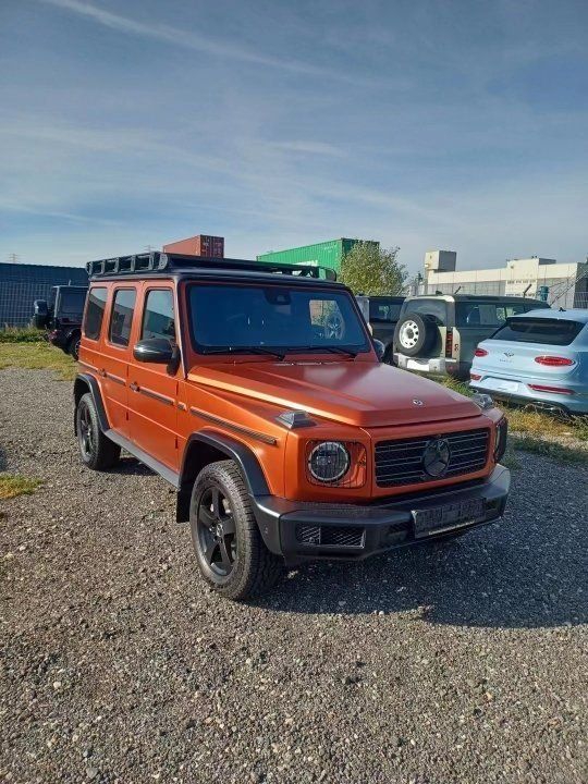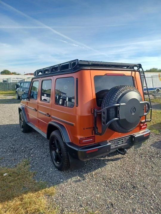 23款欧规奔驰G400 (配置|询价)(配置|询价)d 限量颜色professional Line专业版❗ 暴力哑光古铜橙/黑内饰·专业版带梯行李架 18寸专业越野胎、雷达测距 、led大灯 、越野灯罩 、远程遥控预热+方向盘加热 、钢琴漆+熏黑木纹内饰、天窗、运动座椅 、柏林之声高级音响 、隐私玻璃、