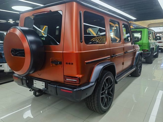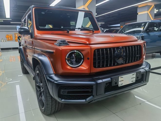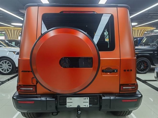 全新22款奔驰AMG G63 (配置|询价)它硬朗的方盒子造型,没有多余的弧度、没有任何曲线,眼光所及满是平直锋利的线条,就连车顶上的导雨沟槽,也是沿着车顶周围一圈,分外焊接上去的金属槽,车门搭钮更是绝不虚心,硬挺挺地屹立在门缝之外,外凸的轮拱、造型如同 梯形的引擎盖。