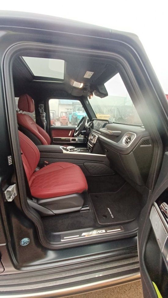 23款奔驰G63 磨砂黑/红 独家内饰 菱形格子皮,后排娱乐 电视接收 大暗夜包 AMG双碳纤维 碳纤维方向盘,碳纤维内饰,22寸熏黑轮毂,前座椅舒适包