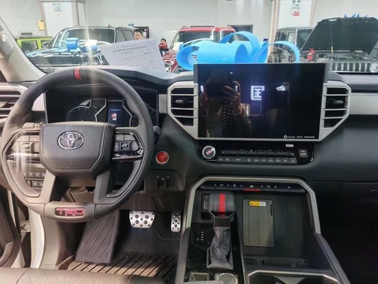 丰田坦途新车采用悬浮式中控大屏设计,中控屏从低配版8英寸到顶配版的14英寸,并且还提供有12.3英寸的全液晶仪表盘可供选择,支持CarPlay和 Android Auto系统。值得一提的是,新车全系标配Toyota Safety Sense 2.5智行安全系统,具备拖挂模式、蠕行模式、越野模式等多种驾驶模式。