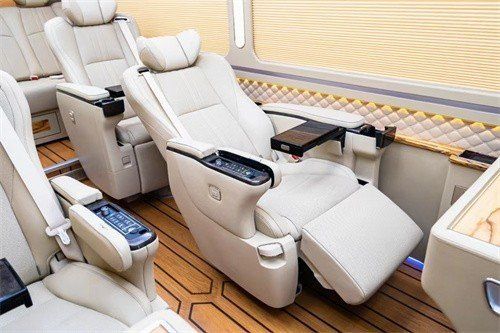 考斯特外观经典,大气。丰田考斯特改装商务车车身长度为7.005米,身宽度为2.040米,车身高度为2.774米。华通丰业丰田考斯特新增了隔热隐私玻璃,各种镀铬装饰以及镀金标识,庄重感与豪华感油然而生。采用简约设计风格的电视屏风将驾驶席与乘客区隔屏。配以乘客区公务机舱设计,使您在打开车门一瞬间即享尊荣之感。