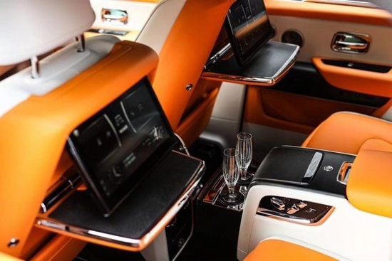 23款劳斯莱斯库里南提供四座与五座版本,四座版本还可以个性化定制冰酒柜与小桌板等等,同时增加了宽大的中央独立扶手箱。贵宾购车电话:17627885113 祝经理 (微信同电话)值得一提的是整个椅背由一张皮料打造而来,立体感十足。让我们不禁感叹劳斯莱斯的皮具工艺并不亚于巴黎的那些专业皮具奢侈品。