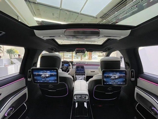 方向盘内圈为真皮,外圈为木饰,二者浑然一体。全新迈巴赫S580车顶采用了真皮顶篷,扩展的中控台还具有折叠桌,USB和HDMI插座。“行政后排座椅”套件可将标准长凳座椅替换为由中央控制台分隔的两个后排座椅。