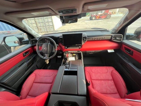 23款丰田红杉车内采用了大量软质材料包裹,部分区域还加入了缝线处理,显得档次感和质感十足。另外车内采用的是四辐式多功能方向盘,并保留了很多物理按键,足以满足驾驶时想要的操控感,车内的科技氛围是通过12.3英寸的全液晶仪表盘和14英寸的中控屏来实现的,中控屏两侧的空调出风口,虽然没有采用时下流行的贯通式设计,但在中控台上对称排列也别有一番风味。另外顶配Capstone车型的内饰将会采用更加豪华的黑白配色方案,并搭配胡桃木装饰面板。