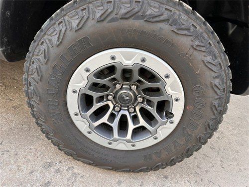 23款道奇公羊霸王龙TRX国六最新款新车传承了道奇Ram家族高大威猛的造型设计,同时细节部分融入了更多高性能元素,包括经过黑化处理的前格栅,引擎盖两侧的黑色进气口,霸王龙 以及为了容纳巨大的机械增压器而设计的通风口等等。此外,新车还配备了视觉冲击力更强的黑色轮眉和外露式的拖车钩,看上去十分霸气。