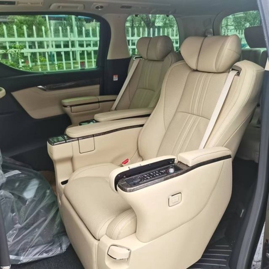 丰田威尔法商务车其中驾驶座具有8向电动调整、附3组记忆功能的电动座椅,最舒适的二排位置,搭载4向电动调整Ottoman头等舱座椅,拥有三面向头枕、独立扶手、扶手置杯架、多功能折叠桌,以及椅背最大78度仰角,前后共拥有450mm滑移长度与高度脚踏垫设计,首排与二排独立系统的影音播放器,让驾驶员与乘客都能拥有专属的影音主控权,在前座驾驶使用卫 星 导航的同时,后座乘客仍可享受视听娱乐。
