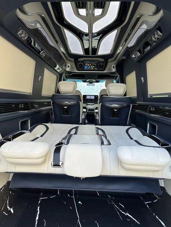 二排座椅是两个独立的航空座椅,舒适度自不必说,三排座椅是宽大舒适的三联排沙发床,车载冰箱、车载窗帘、空气净化器、咖啡机等均可配备。对于奔驰斯宾特你怎么看呢?