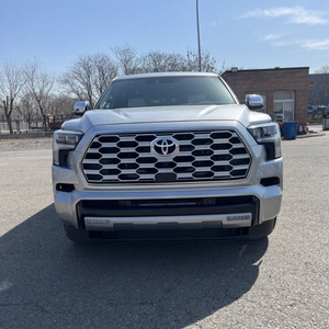 2023款丰田红杉采用了全新的家族式设计语言,前脸装配着六边形的大尺寸进气格栅,搭配车头两侧泪眼式大灯组,整张前脸具有十足的视觉冲击力,非常符合男性消费者的审美。另外,新车提供三种进气格栅样式,分别是镀铬网状格栅、横向辐条式格栅、熏黑式格栅,用户可根据自身喜好进行选择。