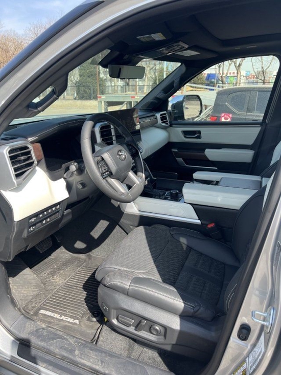 23款丰田红杉采用了悬浮式的车顶,A柱采用了隐藏式的设计,前后翼子板的位置采用了很有视觉深度的车面装饰,门板的底部也采用了凌厉的线条和轮廓。内饰方面,八英寸多媒体触控屏,D形真皮方向盘,12.3英寸全液晶仪表盘,鸡腿换挡杆也均有配备。