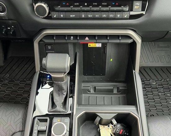 23款丰田坦途的内饰设计也采用了新设计风格,“硬”还是第一感受。无论是平直的线条还是灰白的用料配色,车内的风格都是非常偏向于越野,宽大的悬浮式液晶中控屏幕也是挺抢眼的,根据不同配置也将提供有8英寸以及14英寸的不同配置,就是这个感觉还是很像“大彩电”,只是放在这台车上会显得更协调一些,功能上也丰富了在线车联网以及CarPlay车机互联功能。