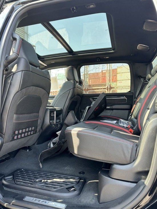 道奇公羊1500 22款 6.2 TRX霸王龙 2级包 喷砂版包内饰采用了家族式设计,整体看上去也非常硬气具有强烈的美式风格,搭配多功能方向盘和大尺寸液晶竖屏并且做工精细。无论是外观还是内饰设计得都非常成功,强悍的外观搭载强劲的动力可以说是当之无愧的越野王者车型。