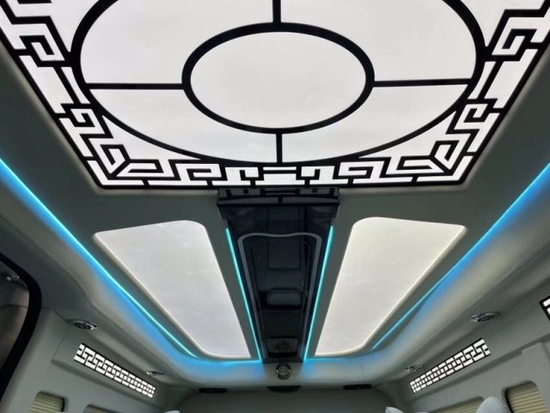 三排是电动沙发床的设计,可以放平睡觉。车侧方还具有全方位的电动百褶隐私窗帘,保证车内环境的隐私性。第二排和第三排的旋转形成一个扩展底座。由于其长度为5.9m,有了更强的空间体验感;让可以在车上款待客户,或与亲友喝茶。13810013306郭先生