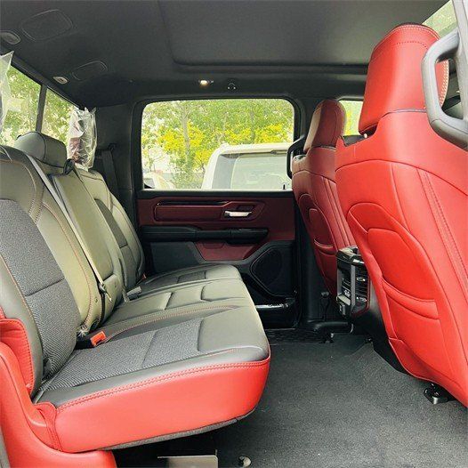 基础版在不选配暗夜组件的情况下座椅的颜色是黑红双拼的桶形座椅,并且座垫和靠背的中心位置采用的是织物材质,织物的好处是当我们穿越在浩瀚的无人区或者驰骋在大漠时通气性更好,并且在北方的冬季刚上车时不会感觉座椅很凉,这种设计对于皮卡车来说还是比较贴心的。