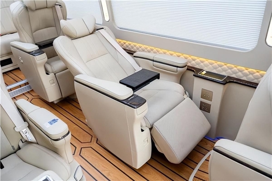 丰田考斯特12座改装商务车的座椅设计有多个版本,座椅的选择也可以体现出不同之处。在座椅的选择上还有真皮座椅以及高档航空座椅等。丰田考斯特改装商务车在座椅的设计上还可以体现出不同之处,比如说我们可以选择增加电动脚托,给我们的腿部一个舒适的支撑减少旅途中的疲劳。