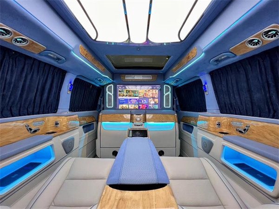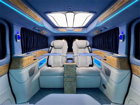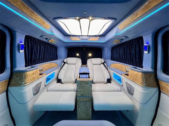 这款车外观独特,借鉴迈巴赫以及奔驰GLS (配置|询价)的外观的设计风格,可以说是设计师的集大成之作。豪客V600商务车是集商务贵宾、郊游、办公娱乐于一体的高端MPV,外观顺畅的车身流线搭配高顶设计,摆脱了传统商务车的笨拙,使奔驰V260L看起来十分的稳重大气,内饰通过改装实现了满足商务接待、洽谈、出游等各种出行需求