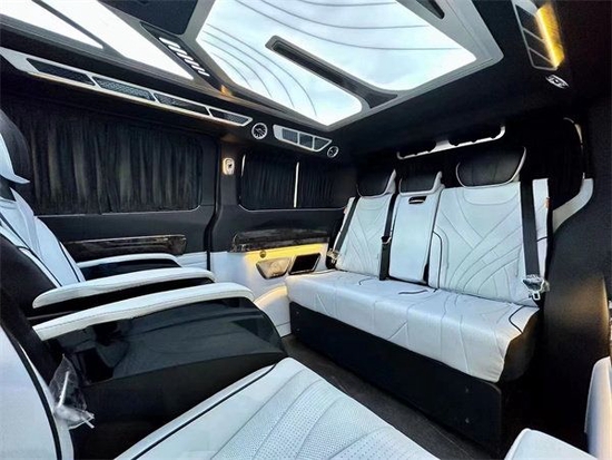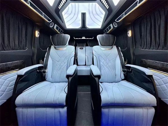 三排升级为一张沙发座椅,支持平躺180度,这使我们在车里休息非常舒适。同时,第二排座椅与第三排座椅旋转,形成对立的卡座,从而形成商业模式;即使用于家庭旅行,也可以增加儿童的娱乐空间。