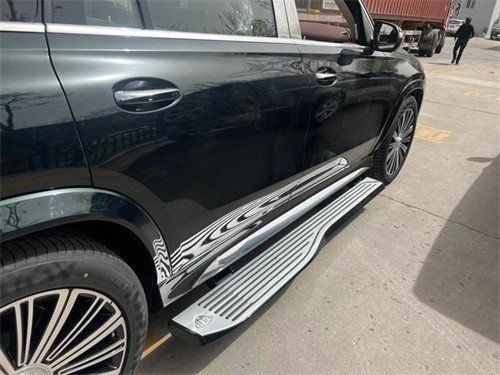 23款奔驰迈巴赫GLS (配置|询价)(配置|询价)600车身侧面非常霸气硬朗,双色拼接的车身显得外观更加奢华。车顶配有银色镀铬行李架,并且车窗周围搭配有镀铬饰条的装饰。迈巴赫GLS600的轮毂采用的是超大尺寸的密辐条样式设计,使得整个侧面看上去更加庄重奢华。并且在后车窗的后方还设置有非常标致的迈巴赫logo,凸显了这款汽车非常独特的身份