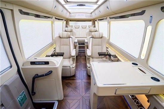 丰田考斯特改装12座能够装备高档的办公桌,豪华的首长席以及汇报席或者秘书席。在内饰的规划上丰田考斯特还增加了冰箱以及雨伞柜等装修,华通丰业丰田考斯特改装商务车选用防滑阻燃地毯,提高乘车途中的安全系数,保障人身安全。