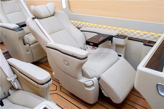 丰田考斯特12座改装在外观的改装上更加注重与整体车型的结合,自然而然的元素融入增加了考斯特改装商务车的外在的端庄与灵动之感,也就是说丰田考斯特改装有着小型轿车所没有的端庄与大气,同样也具有着其他商务车中巴车所不具备的灵敏和高贵。丰田考斯特12座就特别注重改装所能带来的尊贵感和舒适感。华通丰业将织物座椅改装成真皮座椅或者是直接选用原装进口的埃尔法 (配置|询价)座椅,在给乘车人员带来足够的舒适感的同时也可以带来足够的档次感。