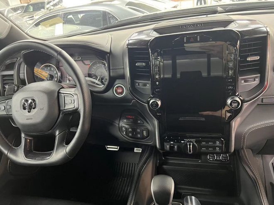 23款道奇霸王龙在内饰部分进一步强化了其高性能版本的形象,中控台和座椅随处可见的TRX标识便是最好的例证。同时,作为道奇家族的旗舰车型,新车还配备了12英寸竖置中控屏幕,除了支持蓝牙、导航和车载Wi-Fi等常见功能,还支持Apple CarPlay和Android Auto手机映射。