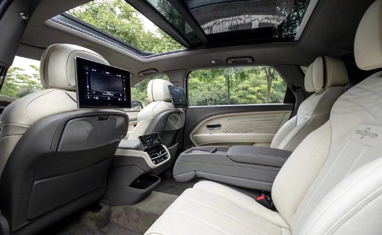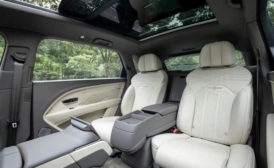23款宾利添越加长雅度版提供三种座椅配置可选:全新4+1座、4座以及5座布局,带有自动温度感应的座椅加热通风系统,4座版后排配有冰箱和小吧台。