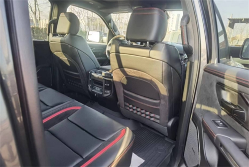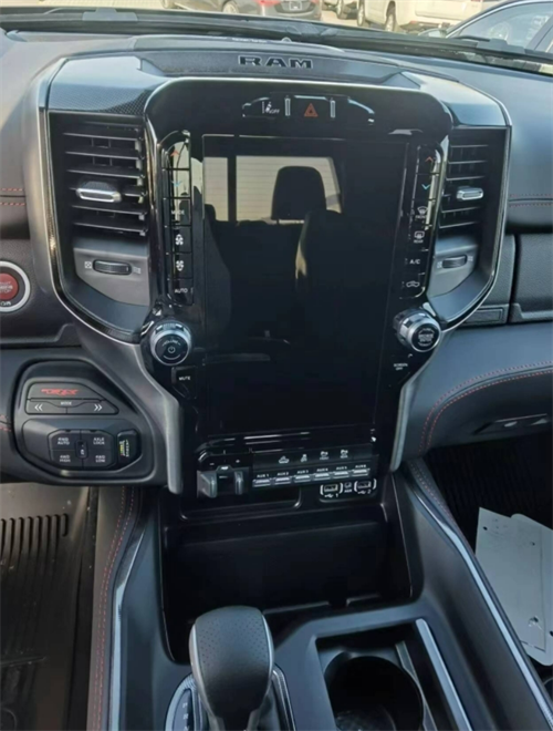 22款道奇公羊霸王龙中控台的设计简洁硬派,符合公羊的气质。仪表盘底边有花纹,则更加凸显了这款车的文雅性。软性材质的仪表台设计,摸上去手感非常舒服,并无些许生硬之处。完全摆脱了美式的粗糙感,边缘、接缝都处理的很精细,真皮座椅各自独立,配有加热、按摩等舒适功能,每个座椅独立配一个操控手柄,各项功能由乘坐者自己控制。