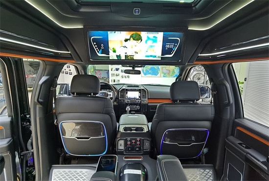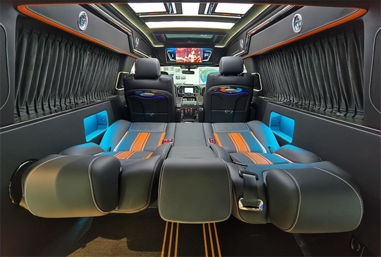 二、三排座椅电动调理,带有座椅加热功能。为了摆脱后排乘坐人员的单调感,咱们在后面加装了氛围灯,使得更加进步了层次。把后排座椅来放平便是一个简易床,远程旅游时也不能忘了休息。