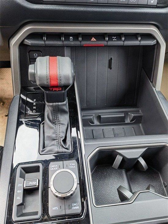 22款丰田坦途SR5越野版 胎压监测、雷达测距、倒影、无钥匙进入、一键启动、真皮多功能方向盘、方向盘加热、主副驾电动座椅、前排座椅加热、LED大灯、并道辅助、车道偏离预警 TRD越野版:全地形轮胎、18寸TRD越野轮毂、后桥差速器、TRD进气格栅、Bilstein越野悬挂、防滑板、挡泥板、红色TRD启动按钮、TRD换挡旋钮、多地形选择、蠕行模式、TRD运动方向盘