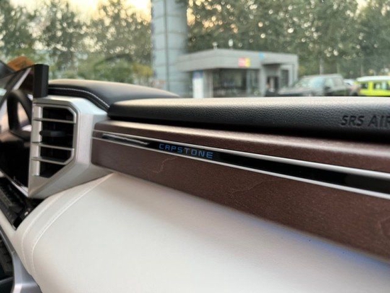 新款坦途新车采用了全新的设计风格,最具辨识度的莫过于前脸这块非常大的进气中网设计,通过亚光银的饰条搭配黑色蜂窝网状的造型使得视觉上整个中网的面积似乎从车标一直拉通到前保险杠的位置上,第一感觉无疑是非常野性的。