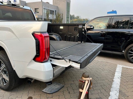 新款丰田坦途外观设计上,新车整体轮廓依旧给人一种高大威猛的感觉,整车均采用平直且硬朗的肌肉线条设计,不过在车辆的前脸设计上,确显的比较夸张,巨大的黑色前格栅,内部采用了横幅蜂窝中网布局,同时在周围还加入了镀铬装饰,另外两侧的日间行车灯则采用了侧“T”型造型,增加了前脸的辨识度。