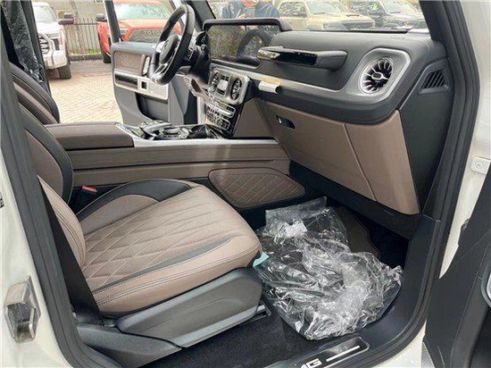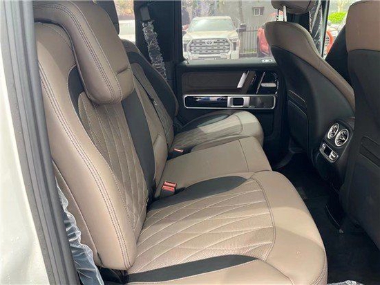 22款奔驰G63豪华精致的真皮包覆提供了足够的舒适性和支撑性,通风和加热功能让乘客免受高温和寒冷的煎熬。中控台多处均采用碳纤维材料覆盖,带彩色TFT显示屏的AMG仪表盘、AMG主菜单和单独的挡位显示器以及采用白色照明的AMG门槛。名贵的选材及精湛的内装令人拍案叫绝。