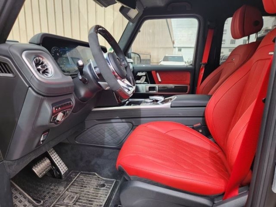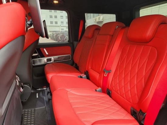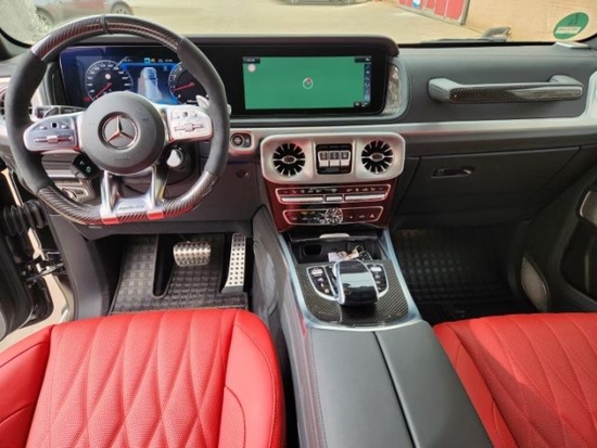 23款奔驰G (配置|询价)63AMG换装了全新造型的平底式AMG运动 方向盘 ,其两侧配以打孔皮质包裹,下部镀铬装饰的造型也与新 G50 0明显不同,看上去十分战斗。此外,全液晶仪表盘+中控大屏的双12.3英寸屏幕设计在新车上也没有缺席,营造出了浓郁的科技感。