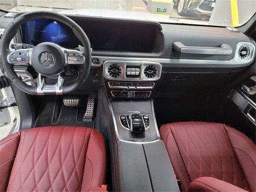 21款G63 (配置|询价) 磨砂白 红 熊猫版 碳纤维内饰 独家内饰包 菱格座椅 多轮廓 按摩 通风 纳帕真皮仪表盘 22交叉锻造轮 AMG碳纤维发动机盖 AMG最高速分隔器 AMG性能方向盘 红卡钳