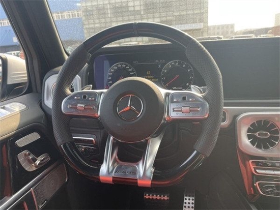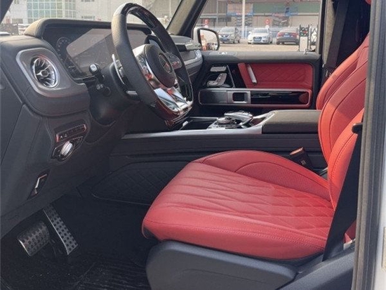 2023款奔驰G63豪华精致的真皮包覆提供了足够的舒适性和支撑性,通风和加热功能让乘客免受高温和寒冷的煎熬。中控台多处均采用碳纤维材料覆盖,带彩色TFT显示屏的AMG仪表盘、AMG主菜单和单独的挡位显示器以及采用白色照明的AMG门槛。名贵的选材及精湛的内装令人拍案叫绝。