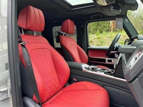 23款奔驰G63豪华精致的真皮包覆提供了足够的舒适性和支撑性,通风和加热功能让乘客免受高温和寒冷的煎熬。中控台多处均采用碳纤维材料覆盖,带彩色TFT显示屏的AMG仪表盘、AMG主菜单和单独的挡位显示器以及采用白色照明的AMG门槛。名贵的选材及精湛的内装令人拍案叫绝