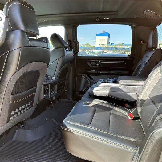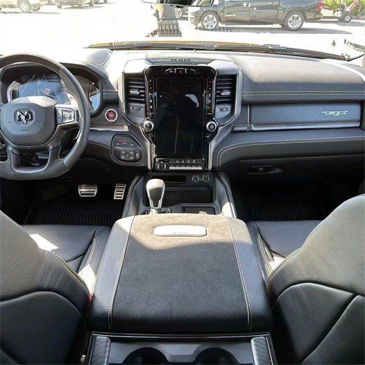 从内饰上看,它也毫不逊色。中控部分配备了12英寸竖置中控屏幕,屏幕一横加一竖,按键很齐全,档把也是彰显霸气,手小的可真是不好握,随处可见TRX标识,这样一个庞然大物内饰也是十分潮流的。