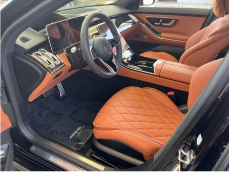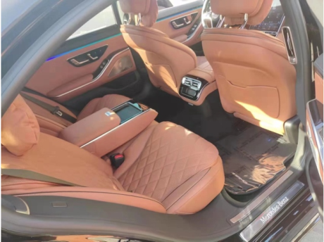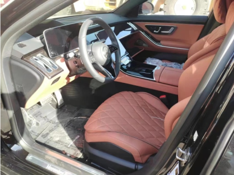 奔驰S580采用了三幅式的全新造型的方向盘,新车的中控台上采用了钢琴烤漆面板装饰,上面采用了多条横向的白色装饰条点缀。采用了悬浮式的纵置大屏,液晶仪表采用了悬浮式的风格。