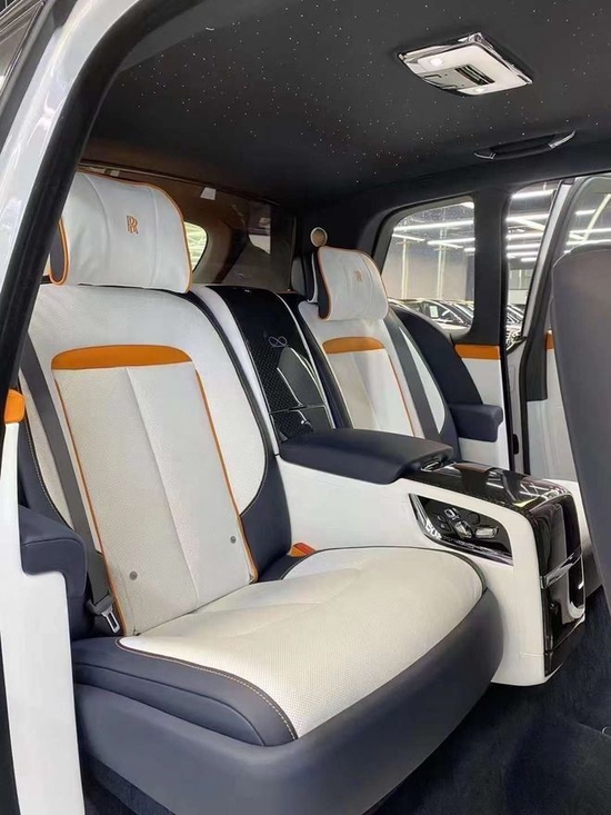 劳斯莱斯库里南, 独享式座椅,可以任意调节座椅角度的后排独立座椅,让宾客沉浸于身心舒适的享受之中,贴心备至。两个独立座椅之间设有后排中央固定扶手,可轻松收纳劳斯莱斯威士忌酒具、香槟及水晶杯,令您与宾客随时随地沉醉于美酒相伴的缱绻时光。